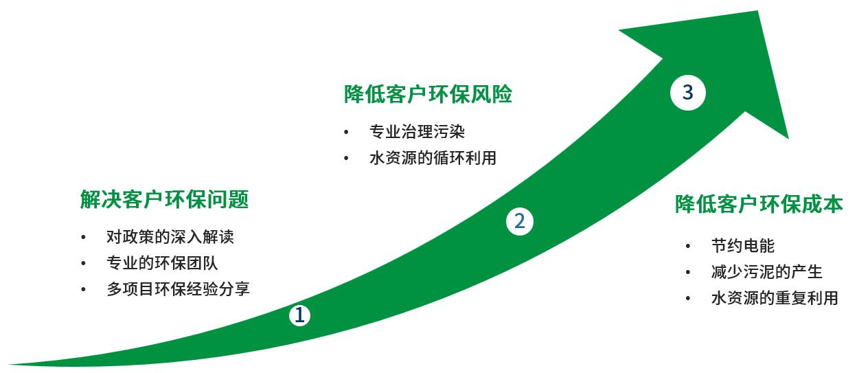 公司專注于各種高難度工業(yè)廢水處理、噴房循環(huán)水處理、冷卻循環(huán)水處理、純水制備、固廢及危廢減量化、廢水資源化利用等。提供現(xiàn)場(chǎng)運(yùn)營(yíng)服務(wù)、專用化學(xué)品管理、環(huán)保技術(shù)咨詢等相關(guān)的一體化解決方案和服務(wù),旨在為客戶解決各項(xiàng)環(huán)保難題,并成為客戶忠實(shí)的戰(zhàn)略合作伙伴。